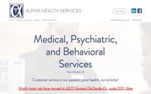 Alpha Health Services LLC provides professional medical center services in New Orleans, LA. Highly rated with 4.6 out of 5 stars based on 39 customer reviews. Contact them by phone at (504) 354-2103 or online through their website. Whether you're searching for a trusted medical center in New Orleans, LA or comparing options in your area, Alpha Health Services LLC is a business worth considering.